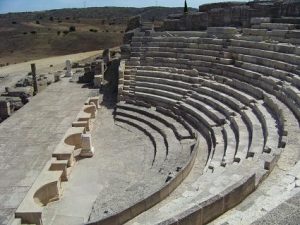 Se había llamado Ciudad Victoriosa y había conocido épocas de bullicio y esplendor, con sus calles llenas de gentes atareadas, sus termas repletas de ciudadanos ociosos y su anfiteatro rebosante de un público excitado por el espectáculo. A su teatro, orgullo de la ciudad, llegaban por entonces histriones, que con su gesto y su palabra daban vida a personajes que con sus fábulas e historias hacían reír o llorar a los espectadores que llenaban sus gradas. Eran tiempos en que Roma edificaba y embellecía ciudades por todo su Imperio.