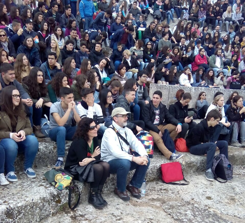Segóbriga-con-los-alumnos-los-profesores-Paloma-Martaqgón-y-José-Luis-Gutiérrez-Foto-de-Rafael-Cledera